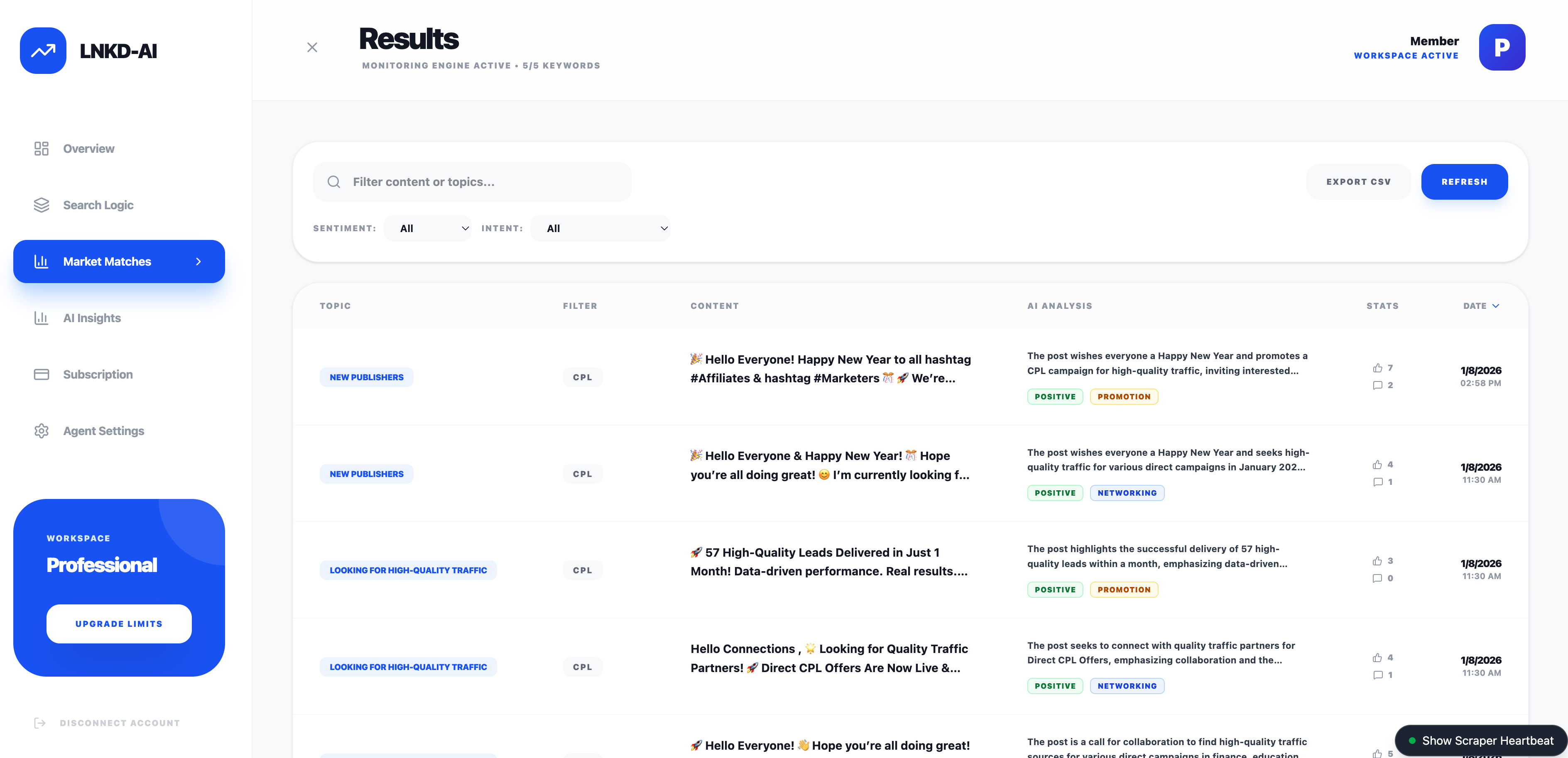 - Automated Process: LNKD-AI scans and qualifies posts at a rate of 1 post every 0.1 seconds (processing speed), with the only bottleneck being the page scroll speed.