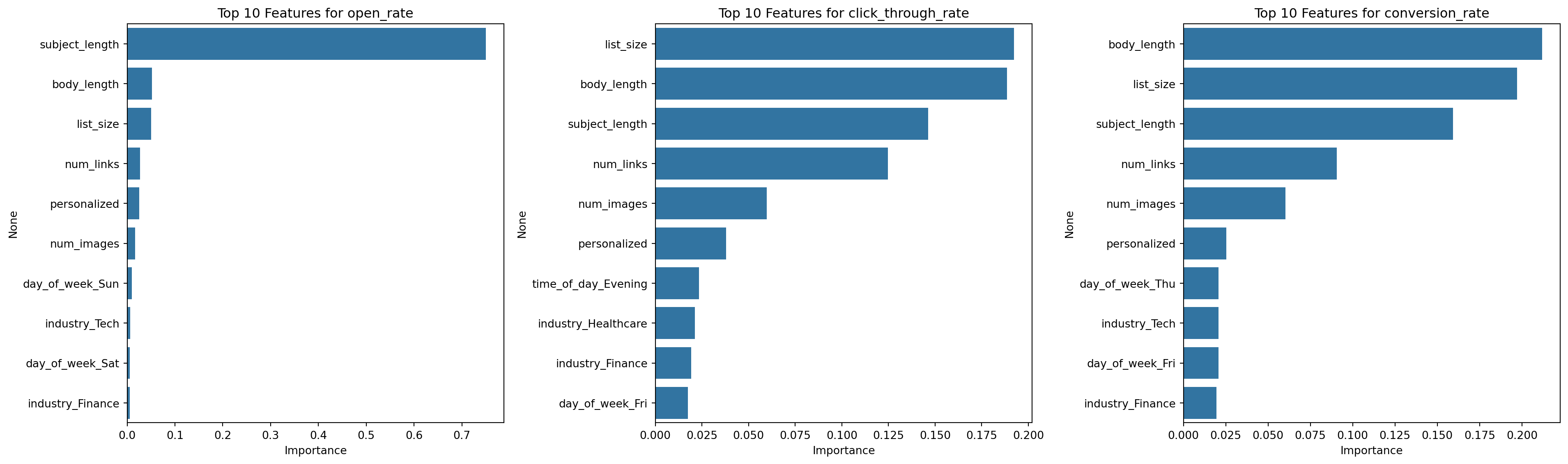 - Subject length, body length, and the number of links in the email content are important factors in predicting campaign success.